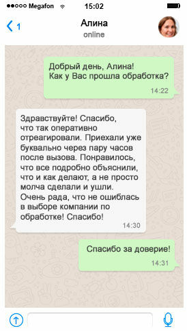 После обработки вы получаете документы, консультацию специалиста, гарантийное обслуживание